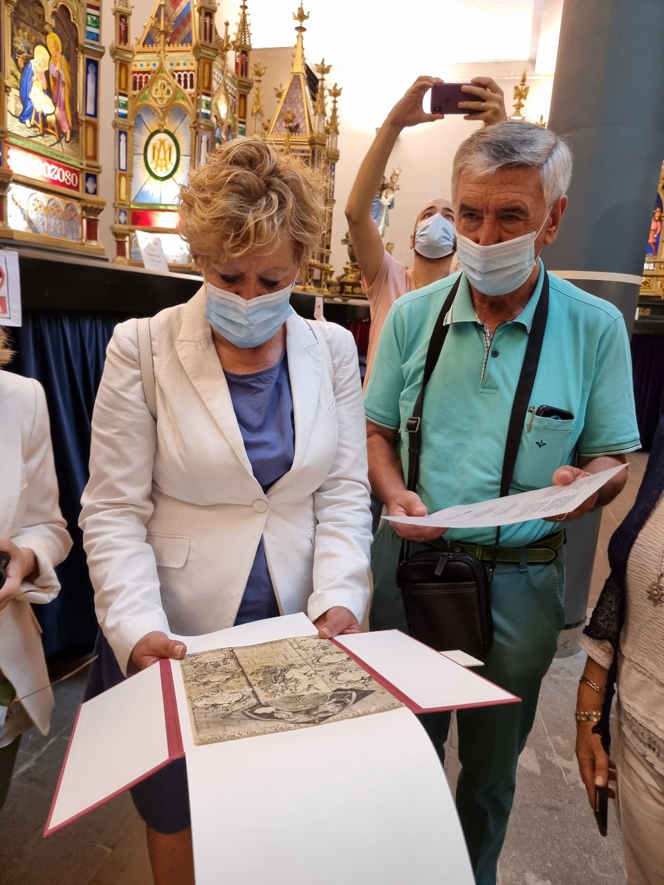 La Cofradía de la Virgen Blanca, agradece la donación de este facsímil por parte de la Diputada de Cultura y Deportes ya que complementa la colección de los grabados con los que cuenta en su archivo. Se trata de un documento que por su singularidad iconográfica permite estudiar e interpretar cómo pudo ser la primitiva hornacina que adosada al muro exterior del ábside de la Iglesia de San Miguel cobijó la imagen de la Virgen Blanca desde el siglo XVII al XVIII. Esta hornacina fue realizada en 1616 por encargo de la recién creada Cofradía del gremio de cereros en 1613. Anteriormente existía otra hornacina, y en 1761, se hizo otra cuyo diseño se debió al arquitecto Diego de Villanueva, que es la que conocemos actualmente y que fue trasladada en 1788 a su posición actual, el atrio de San Miguel, pudiendo ser contemplada por la ciudadanía desde la Plaza de la Virgen Blanca .