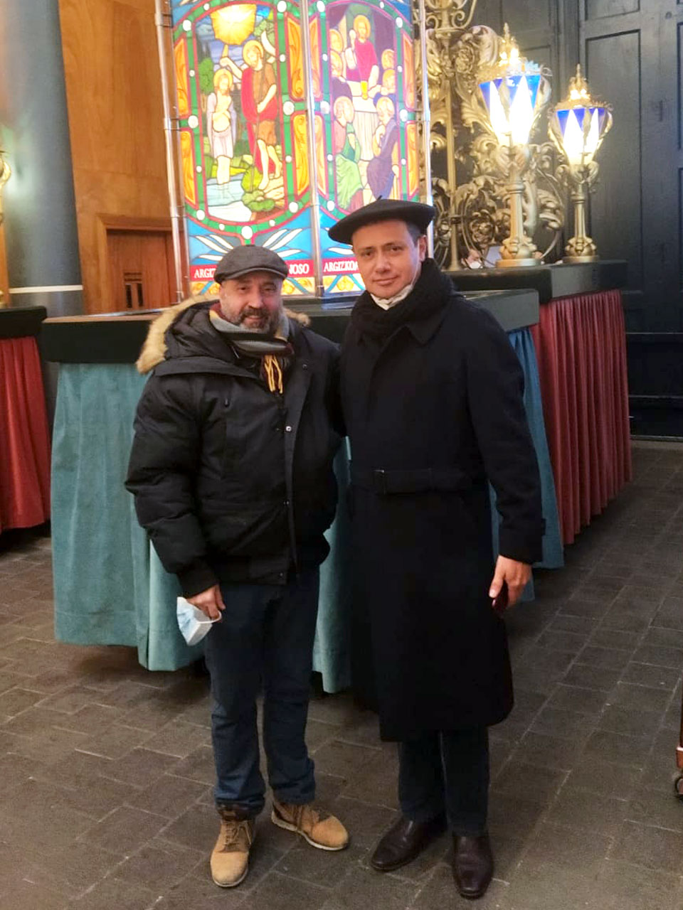 Le acompañaban nuestro maestro vidriero Mikel Delika, y el sacerdote Juan Carlos Pinedo, cofrade y que también tiene una gran experiencia misionera.