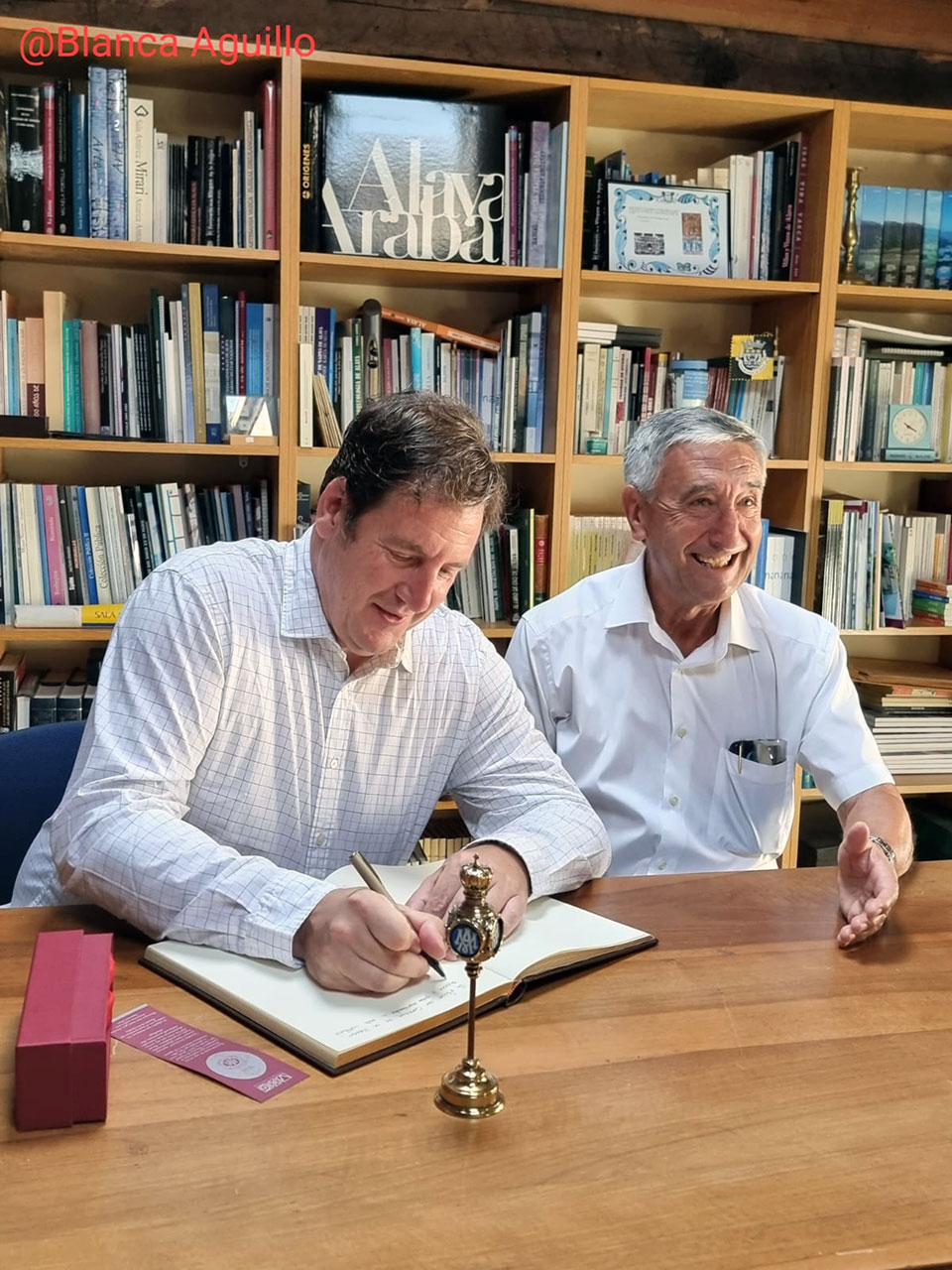 Ayer cumplió su deseo de ser Cofrade de su Patrona, la Virgen Blanca. Gorka Ortíz de Urbina, que representa nuestro mítico y querido CELEDON, se acercó al Museo de los Faroles, donde fue recibido por el Abad y miembros de junta la de gobierno y mantenimiento, recibiendo el farol institucional y firmando en el libro de Honor de la Cofradía de la Virgen Blanca. Le agradecimos su apoyo a la campaña “Yo con mi Cofradía”, “Ni nire Kofradiarekin”, con la que invitamos a todos los vitorianos, y en especial en este momento a los Blusas y Neskas, de nuestras Cuadrillas, para que se hagan Cofrades.