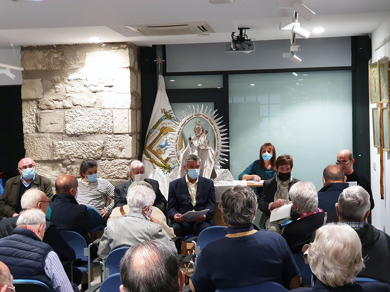 Por las reservas de control de la pandemia, no se hizo la procesión por las calles vitorianas, pero se celebró la Misa de acción de gracias y recuerdos por todos los fallecidos de los Centros citados, que estuvo acompañada del Coro del Centro Extremeño, con una ofrenda floral de cada una de ellas, en la Capilla de la Virgen Blanca, cantando su himno amenizado por el coro del Hogar Navarro.