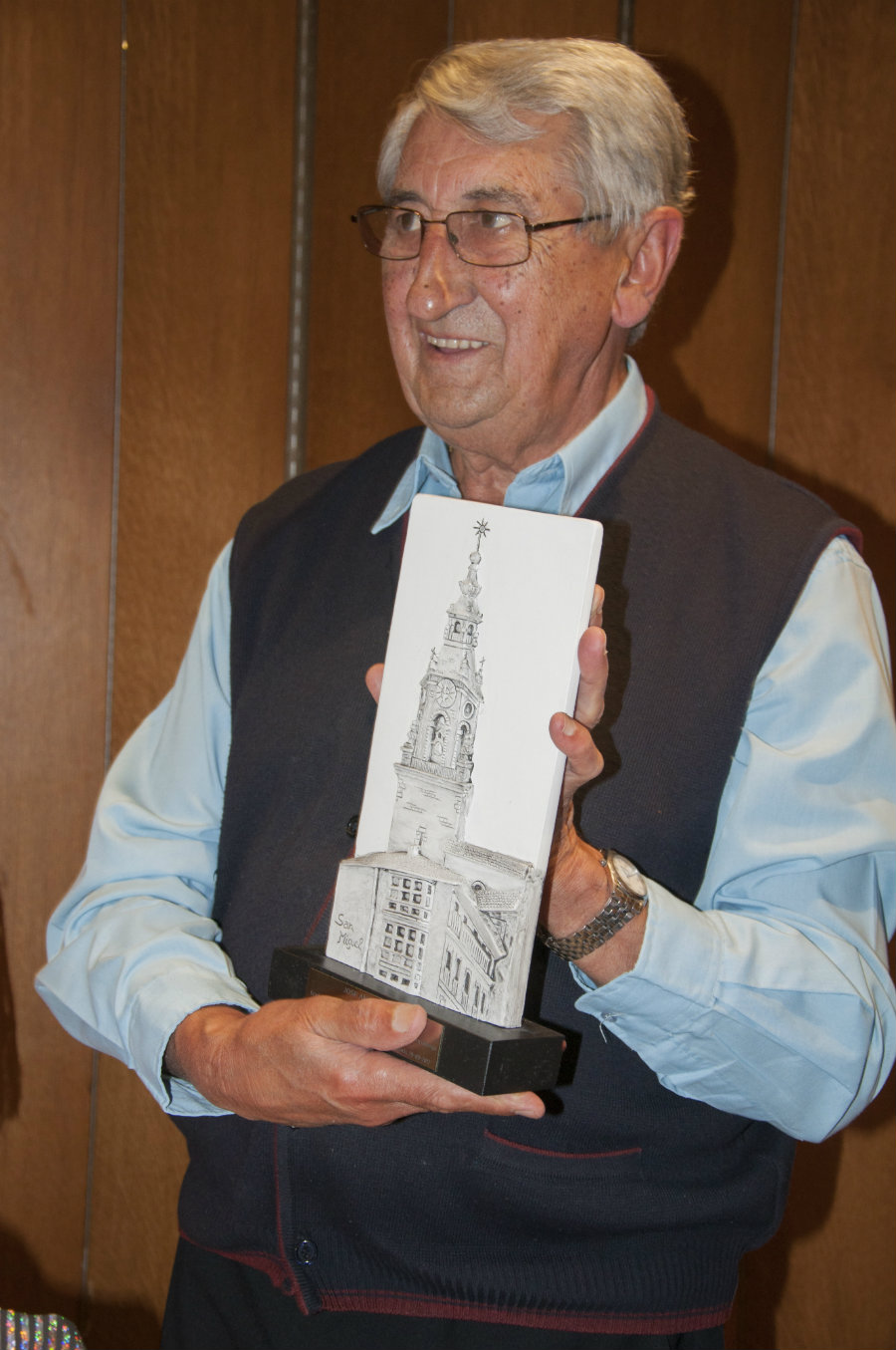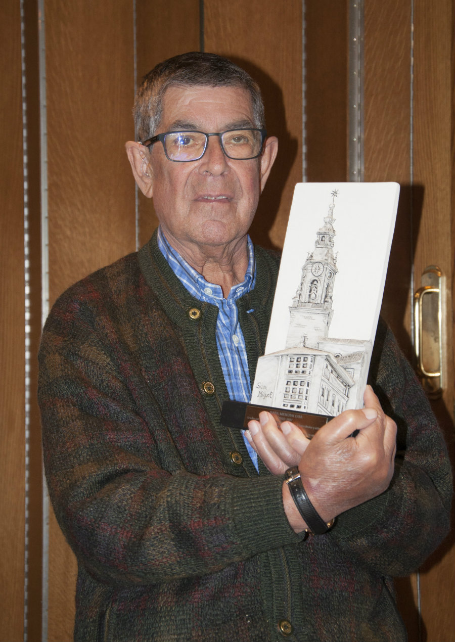 Como no podía ser de otra manera, en los postres hubo tiempo para unas palabras de José Antonio y Rafa, y después el actual “sacristán” Ramón Lengarán y su esposa María Jesús Calleja, en nombre de todos, hicieron entrega a ambos de un recuerdo entrañable. Se trata de un dibujo en relieve de un espacio muy significativo – la casa cural y al fondo asomando la torre de San Miguel- tan admirada por todos los vitorianos y alaveses en tan señalado día del 4 de agosto, inicio de la fiestas.
