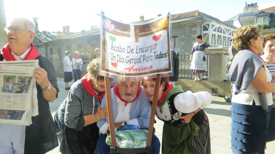 En el desfile el ingenioso Txomin Etxebarría que en el carro eléctrico que utiliza para desplazase, había colocado una pequeña pancarta que decía “Acabo de encargar un día genial para todos”. Y efectivamente así fue, un día lleno de luz, color y alegría veterana.