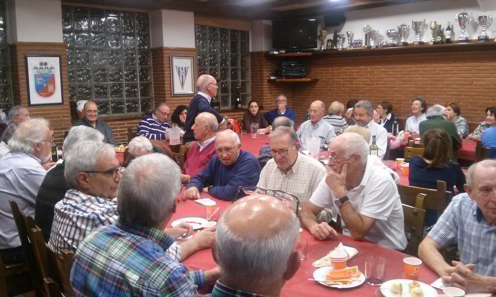 Cargados de bienes espirituales como dice el dicho popular “de la Misa, pasamos a la mesa”. Como todos los años, nuestro buen amigo Javier, de la Sociedad Irrintzi, acogió en dicha sede a un nutrido grupo de cofrades colaboradores, este año 60, para pasar una velada de confraternización que se inició con el “Eskerrik asko Jauna”, entonado por el capellán. Tras la cena, la música en los corazones y sus voces entonando canciones populares, que dado el obsequio ofrecido del librito de cancionero, fue muy participativo.