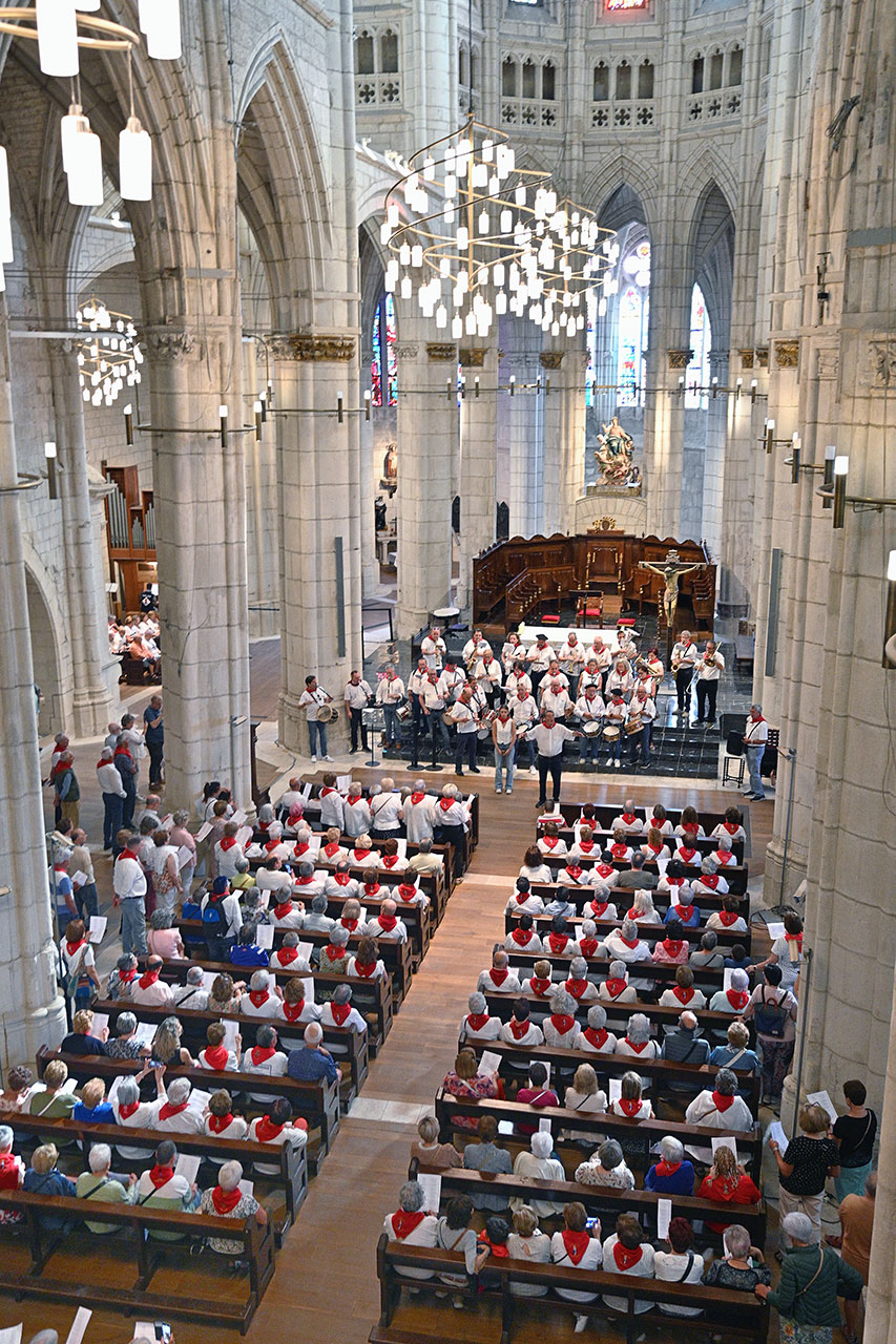 El Rosario de la Aurora marcó el inicio del día 5. Desde la madrugada expresiones de cariño y devoción se mostraron en las calles, santuario y hornacina … .Primero en la procesión, luego en la Misa Pontifical y a lo largo de toda la jornada  en las ofrendas y visitas. Nadie se olvida de la Patrona: jóvenes y niños, familias completas, blusas y neskas …Y un año más, los voces de la Coral Manuel Iradier dando realce a las ceremonias religiosas.