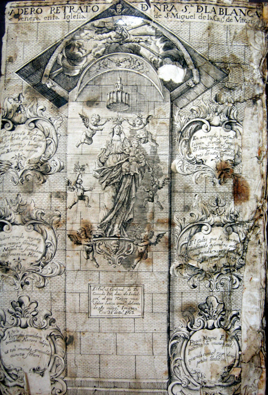 La Cofradía de la Virgen Blanca, a través de M. Camino Urdiain, nuestra documentalista, ha participado en el proyecto en dos áreas. Por una parte, la documental, aportando referencias de cuanta documentación textual y gráfica existe en nuestro archivo y en el del Archivo Diocesano. La información aportada refiere cuantos testimonios se han hallado de las intervenciones( autores y actuaciones) llevadas a cabo en la imagen desde el s. XVII. El trabajo se ha incluido en el informe final de la empresa restauradora. De todo ello se dio cuenta en conferencia ofrecida el pasado 24 de marzo. Por otra parte, en esta Jornada nos presenta el resultado de las investigaciones que ha llevado a cabo sobre las distintas hornacinas que han cobijado la imagen desde el s.XVI. Este trabajo, inédito, pone de manifiesto importantes novedades y hechos totalmente desconocidos hasta hoy. La hornacina y la imagen forman un conjunto material de difícil separación, dado que el espacio ocupado por la imagen ha tenido enorme importancia en su conservación y como lugar identitario de la devoción publica a la Virgen Blanca.