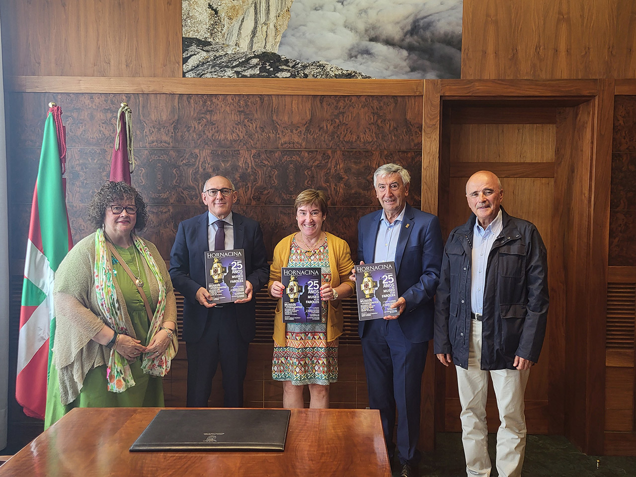 Como es tradición en los días previos a las fiestas en honor a la Virgen Blanca, la Junta de la Cofradía ha llevado a cabo su ronda de visitas institucionales para hacer entrega de la revista Hornacina. Este gesto, que simboliza el inicio de la celebración, ha permitido a los cofrades saludar y compartir un momento de cercanía con las principales autoridades alavesas. En esta ocasión, fueron recibidos por el obispo Juan Carlos Elizalde, el diputado general Ramiro González, la alcaldesa de Vitoria-Gasteiz, Maider Etxebarria, y la presidenta de las Juntas Generales de Álava, Irma Barredo. Con cada encuentro se renovó el espíritu festivo y el compromiso con una tradición que une a la ciudad en torno a su patrona.