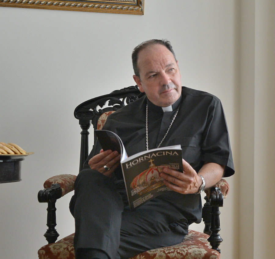 Durante la visita, además de la entrega de la revista Hornacina, presentamos nuevos y futuros proyectos que D. Juan Carlos los ha acogido con ilusión, y como él mismo señaló como prueba de que es una Cofradía que vive y vibra, y es motor espiritual en su sede, la parroquia de San Miguel, Santuario de la Virgen Blanca.