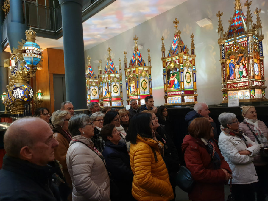A las 5 de la tarde la Cofradía ha acogido a estos hermanos y hermanas Cofrades, en el Museo de los Faroles. En primer lugar visionado del video que adentra al visitante en la historia del Vitoria-Gasteiz, la devoción a la Virgen Blanca y la historia del propio Museo que se ha visitado a continuación. Según sus propias palabras han quedado impresionados de la inestimable joya del arte del vidrio y metal que conserva y custodia la Cofradía de la Virgen Blanca.