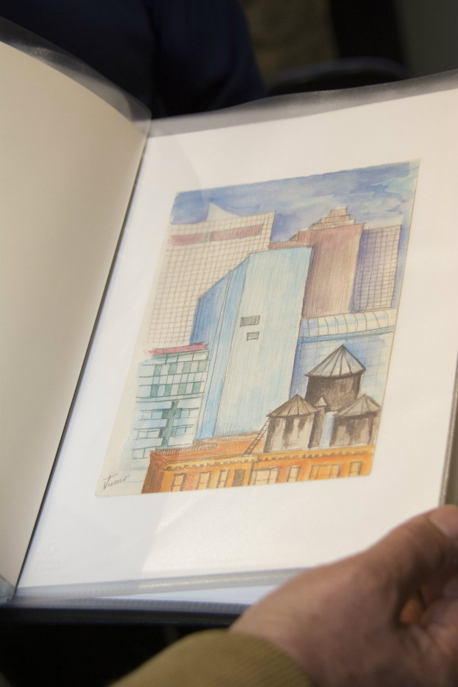 En estos viajes no olvida llevar su pequeña caja de acuarelas, lápices y su cuaderno de papel acuarela. Cuando le llama la atención una obra arquitectónica, un paisaje, una escena concreta, en ese mismo momento la traza y dibuja a lápiz y si no requiere mayor precisión también en esos momentos, la colorea con acuarelas. Sólo cuando el objeto o escena a representar es compleja por los detalles arquitectónicos, ambientales etc. toma una fotografía para posteriormente acabar la obra en el estudio. Estas escenas de sus viajes reflejan un momento, el instante y con los trazos del dibujo y el color fija en papel la memoria del objeto y del momento.