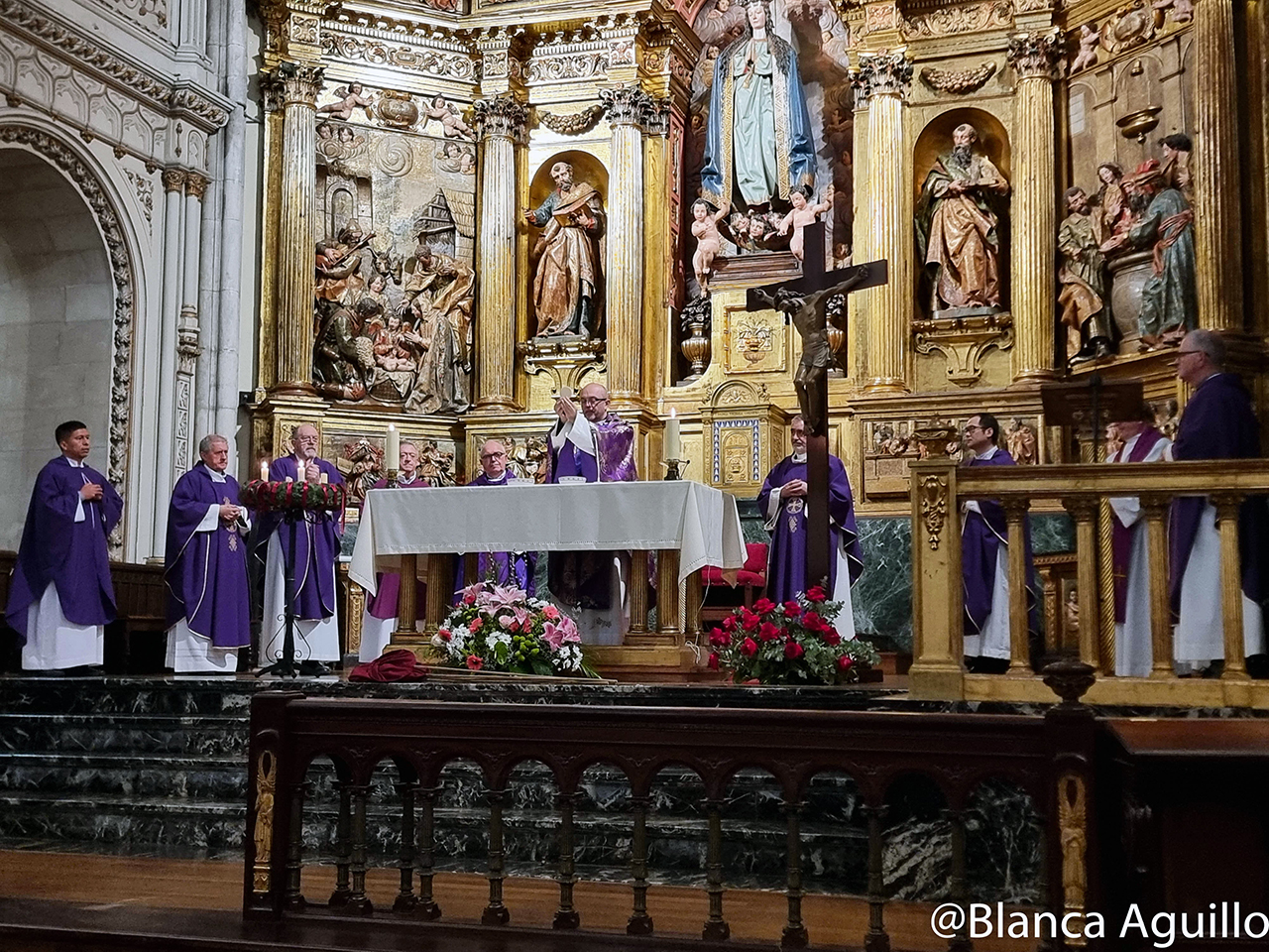 Con emociones renovadas y el templo lleno, acompañado de varios sacerdotes, entre los que se encontraba el anterior Rector de Seminario Luis Mari Goicoechea, y el actual Unai Ibañez dirigiendo el Coro de la Catedral, así como el Decano de la Facultad de Teología Toño Badiola, nos recordó sus vivencias vocacionales, entre las que citó las visitas a centros marianos, en uno de los viajes de la Cofradía de la Virgen Blanca a Sevilla.