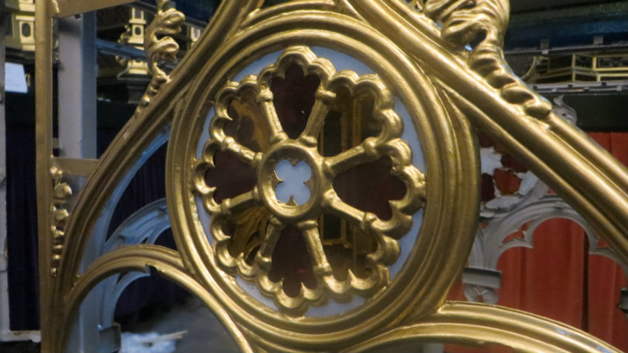 El proyecto de restauración se ha planteado esencialmente en la estabilización y restauración de toda la estructura metálica, por lo que ha sido necesario las siguientes intervenciones: desmontar toda la carroza, decapado de las partes metálicas, atacar el óxido de alguna de las piezas, reforzar todos sus elementos con soldadura, dar sulfato de cinc, pintado total con oro líquido y barnizado final. Esta parte del trabajo la ha llevado a cabo el metalistero Javier Fernández, y en relación a los vidrios ha sido el vidriero Mikel Délika quien ha colaborado con la restauración de alguna de las piezas.