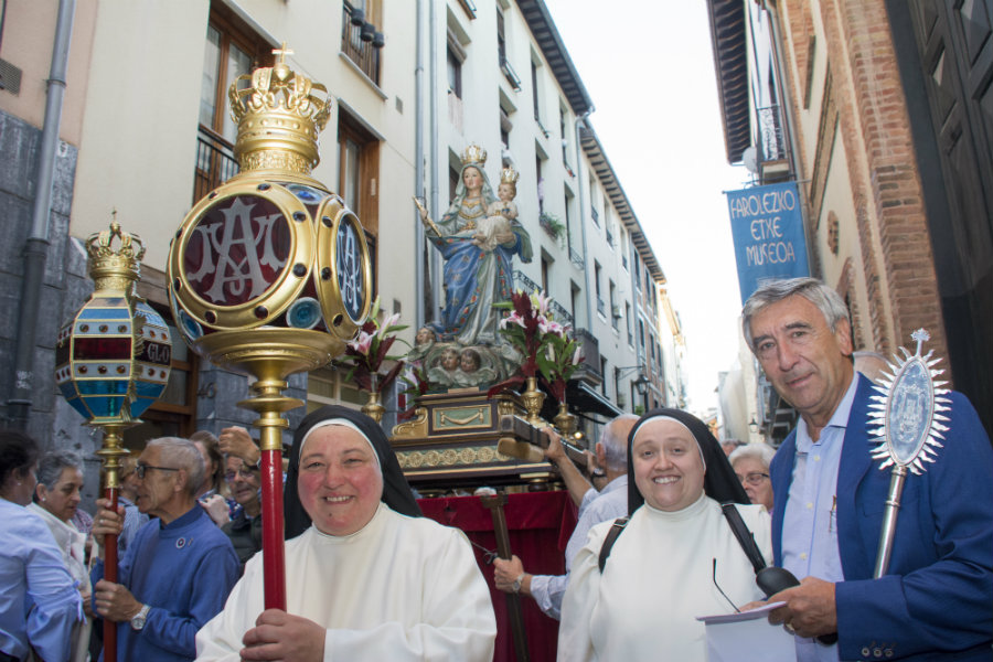 Nos acompañaron también, representantes de las Casas Regionales de Álava, Iñaki Vera, presidente de la Cofradía de Nuestra Señora en la Vera Cruz, con varios de sus Cofrades, cofrades de la Cofradía de San Prudencio , de Estíbaliz, de la Virgen Blanca con varios miembros de su Junta Permanente, con la Bandera y Varal, así como parte del equipo de mantenimiento del Museo de los Faroles, que atendieron la preparación previa, el desarrollo y su finalización logística, para que todo saliera de acuerdo a lo diseñado. Para dar testimonio gráfico de cuanto acontecía nuestra Vicesecretaría y amante de la fotografía, Blanca Aguillo, paso a paso fue tomando instantáneas de este acto de devoción mariana.
