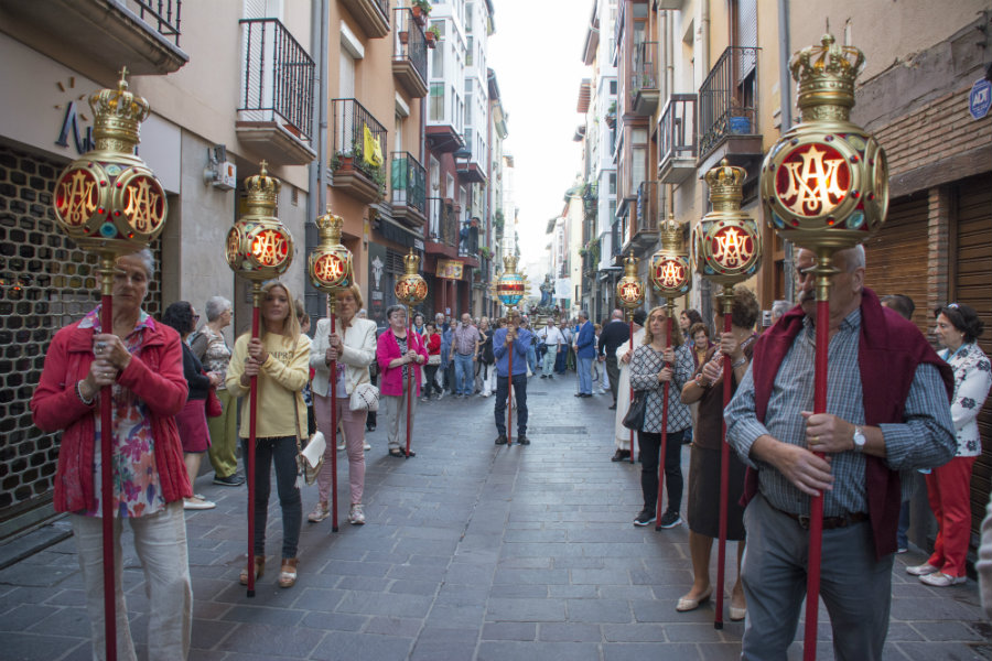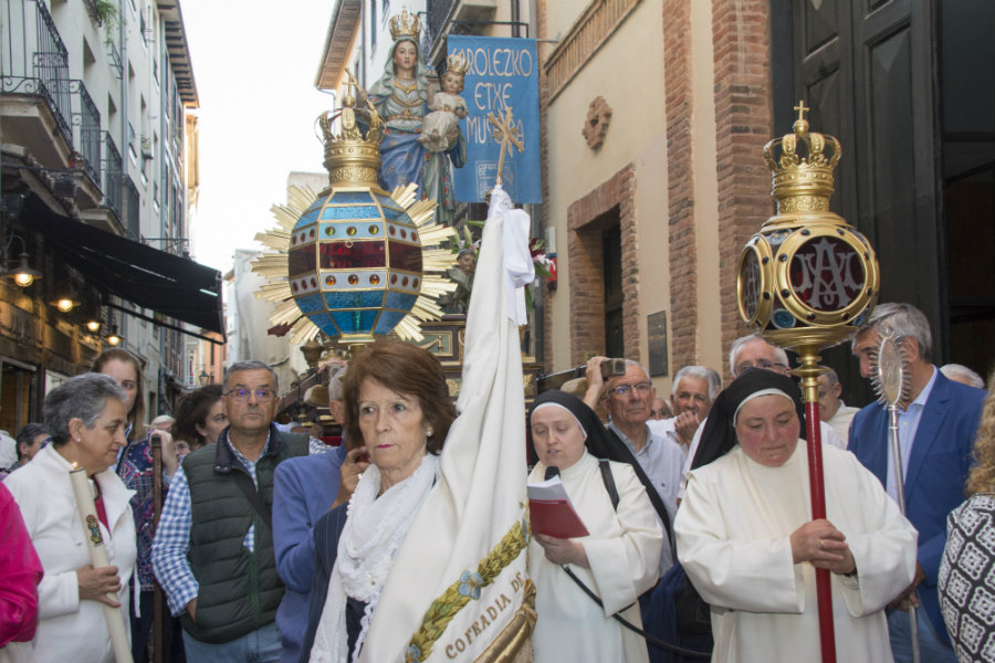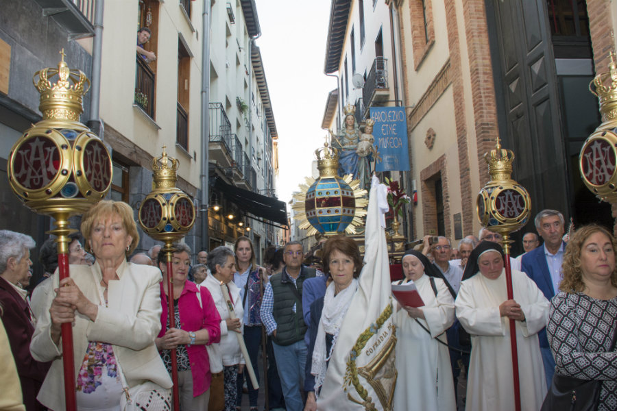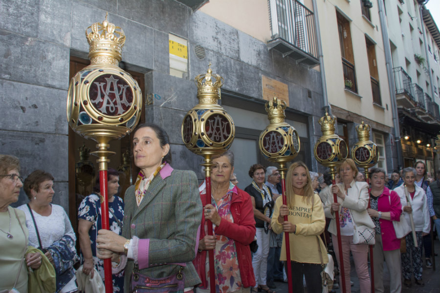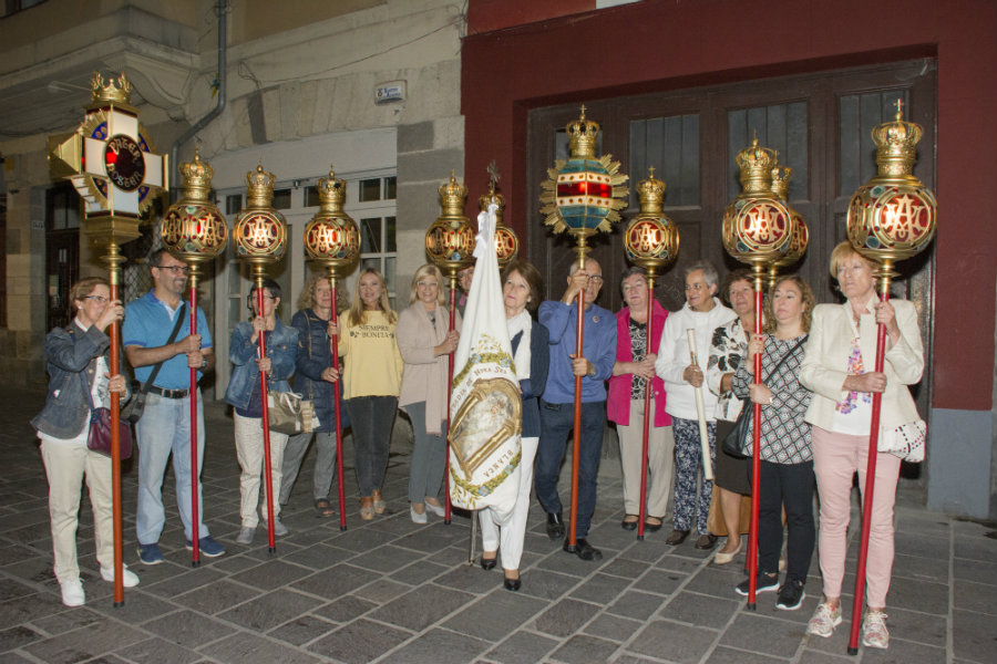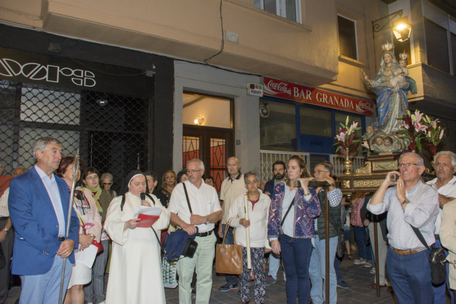 El recorrido fue: Zapatería, Santo Domingo, Pintorería hasta la Iglesia del Convento de Santa Cruz de las MM. Dominicas. Dos de ellas, una llevando el farol del Avemaría y Sor Carmela que dirigía los rezos y cánticos durante todo el recorrido siendo ayudada por María Jesús Pinedo. presidenta de la Hermandad de Lourdes, cofrade que con su buen hacer e ilusión mariana acompaña y acude a cuantos actos organiza la Cofradía de la Virgen Blanca.