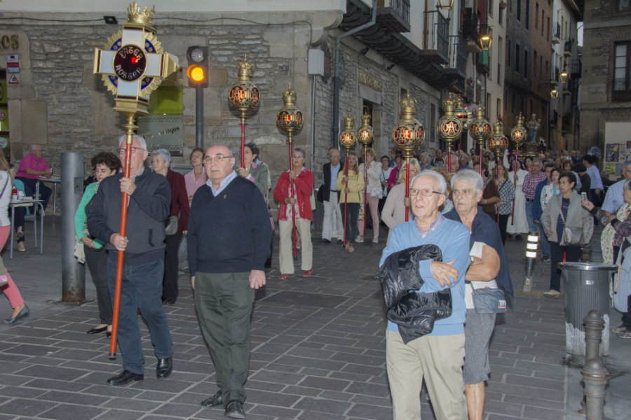 Este año se ha deseado de forma especial atender las recomendaciones del papa Francisco que ha invitado a los fieles de todo el mundo a rezarlo cada día, especialmente en este mes de octubre. Es una forma de unión y penitencia de todo el pueblo de Dios, pidiendo a la Virgen que proteja a la Iglesia.Con estas intenciones dio comienzo la procesión en la que participaron cofrades y devotos de la Virgen y alguno de ellos portando diversos faroles: 1 padrenuestro, 10 avemarías, 1 gloria, la imagen de la Virgen Blanca peregrina.